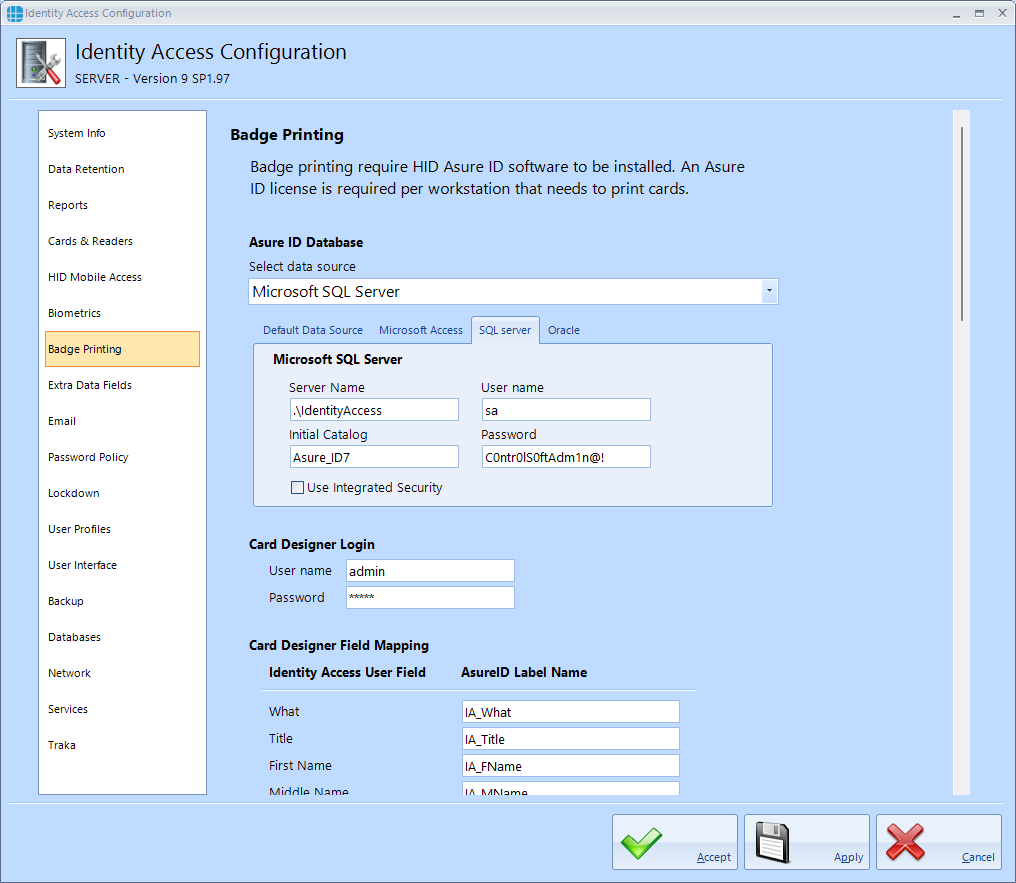 Controlsoft Identity Access 9 install includes a copy of HID Asure ID® 7. This is an ideal choice for organizations looking for affordable and easy-to-use photo ID card software with direct integration with the Controlsoft Identity Access database.