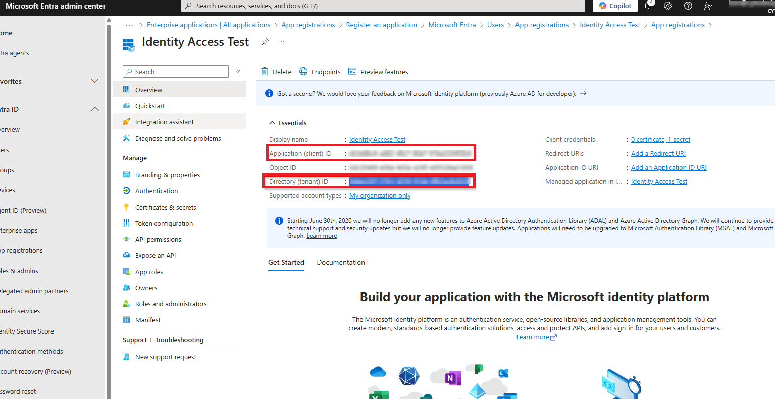 9. Record the Application (Client ID) and Directory (Tenant) ID