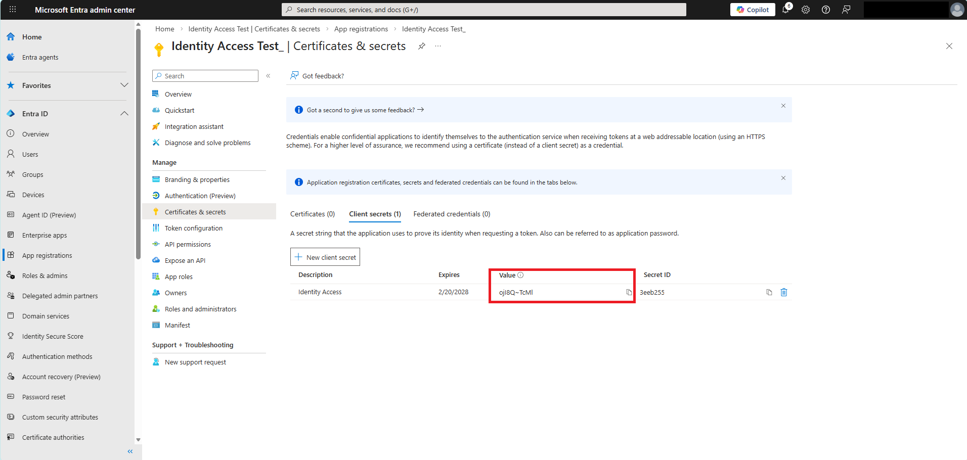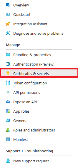 6. Click Certificates and Secrets on the left.