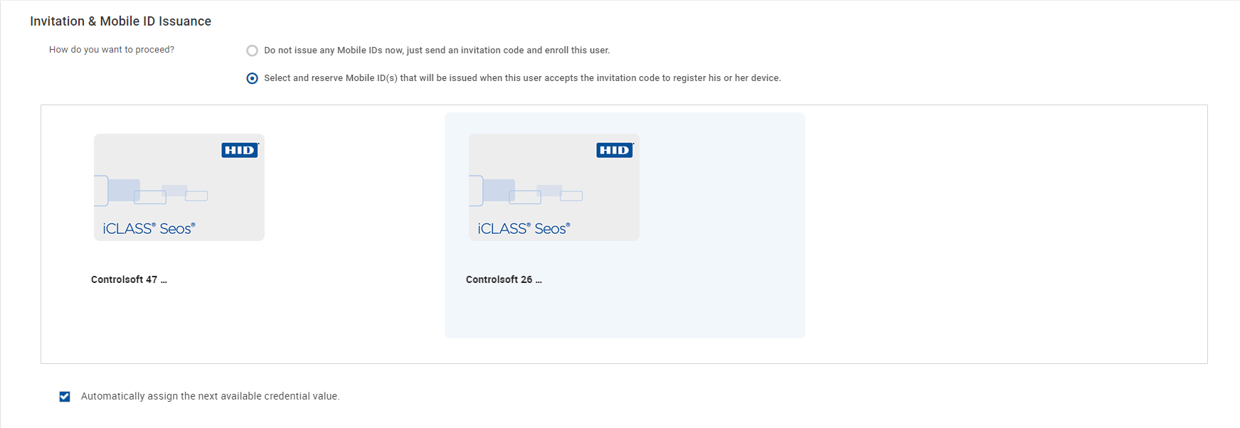 - Select the invitation code and reserve Mobile ID(s) that will be issued when the user accepts the invitation code.