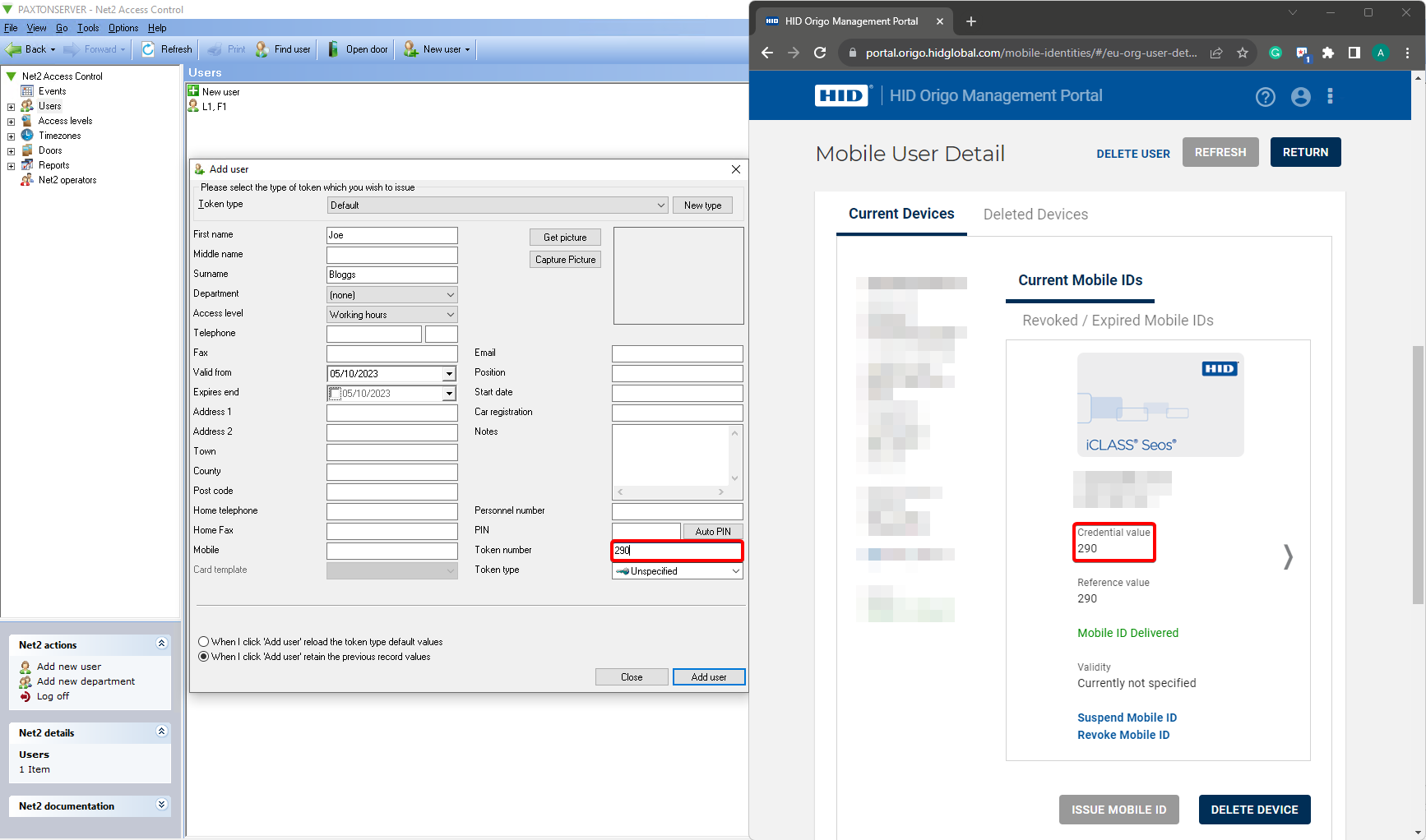 16. As a minimum, add the First Name, Surname, Access Level. The Token Number field should match the mobile ID as assigned in the HID Mobile Access portal.