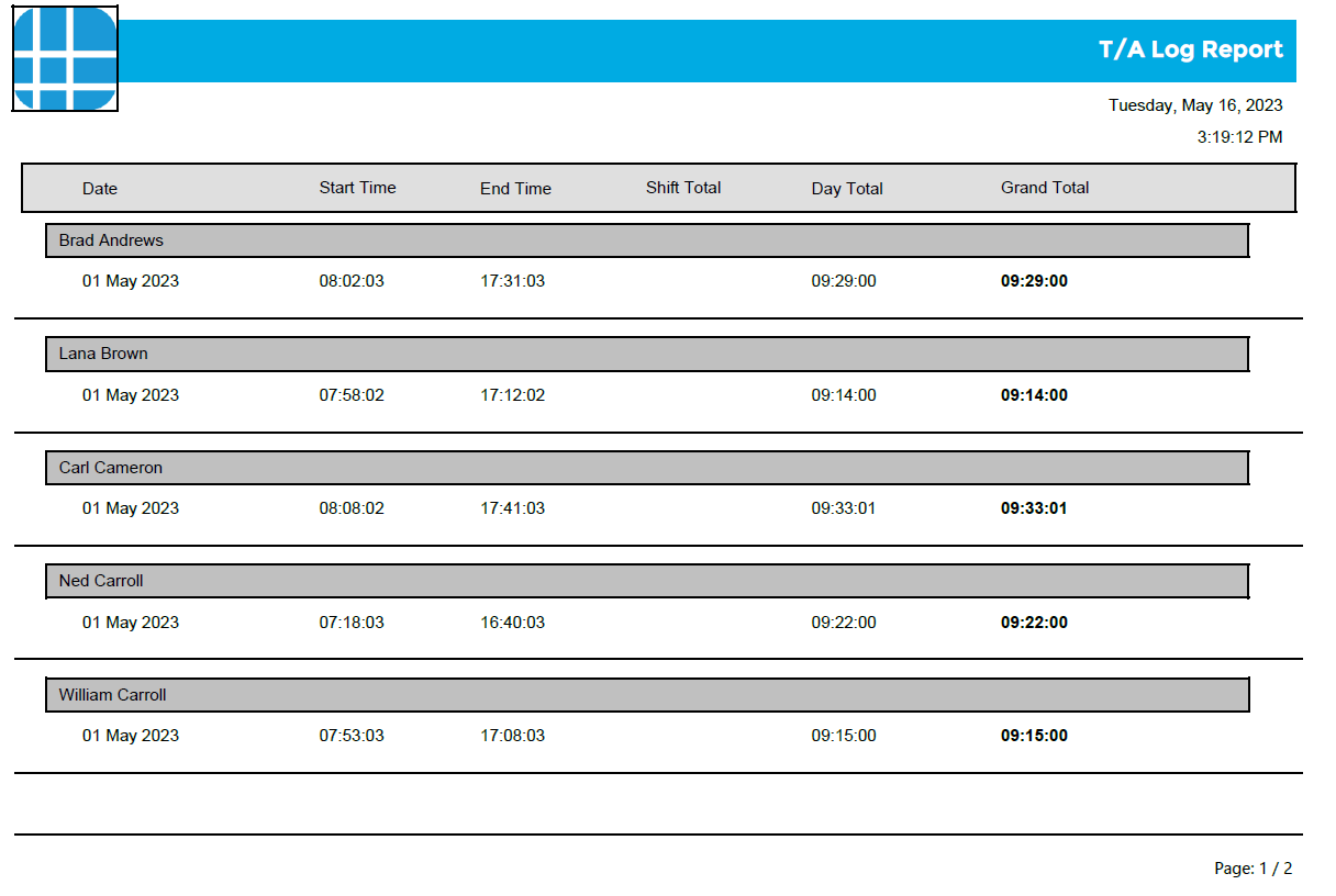 Below is an example of a T&A Report: