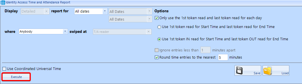 3. If the report is an on going scheduled report, it is possible to Save your filters. When you next wish to run the report, click Load, and select your query, followed by Execute.