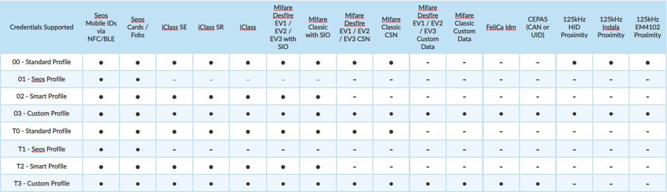 This knowledge base is focuses on the different credential profiles within the HID Signo range. Where configuration changes can be made on the fly with the use of the HID Reader Manager app, the credential profiles are setup from factory and cannot be changed in the field.
