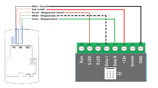 As shown below, connect the following wires from the EntryProx to the Wiegand reader port on the INet: