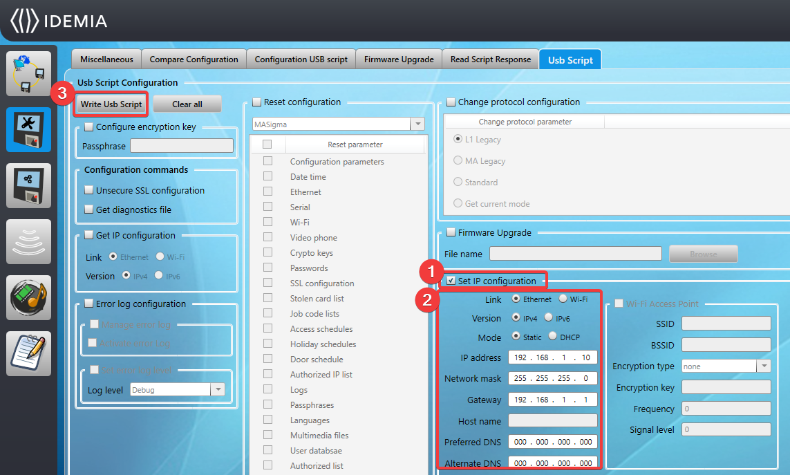 4) Select 'Set IP Configuration' and type in the relevant infomation. Once done, click 'Write USB Script'